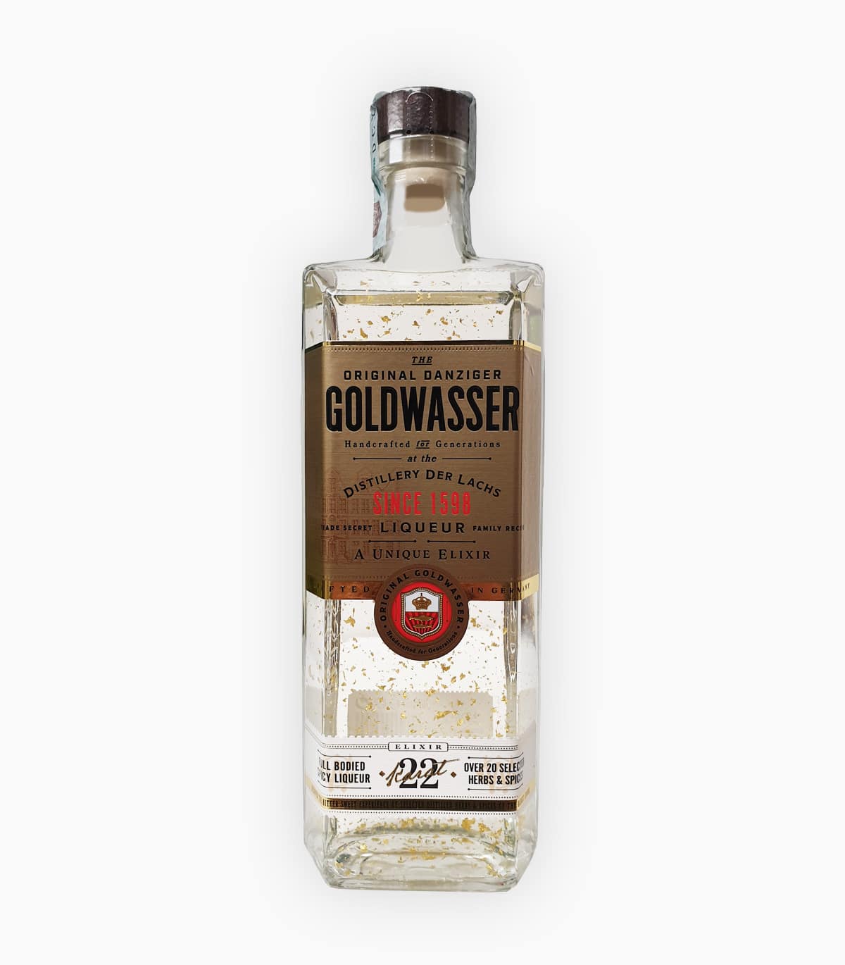 L’originale Danziger Goldwasser è una specialità apprezzata dagli intenditori già dal lontano 1598. Le caratteristiche, che hanno reso famoso il Goldwasser si ritrovano in un gusto particolarmente delicato, nonché nelle scaglie d’oro di 22 carati commestibilipresenti all’interno.