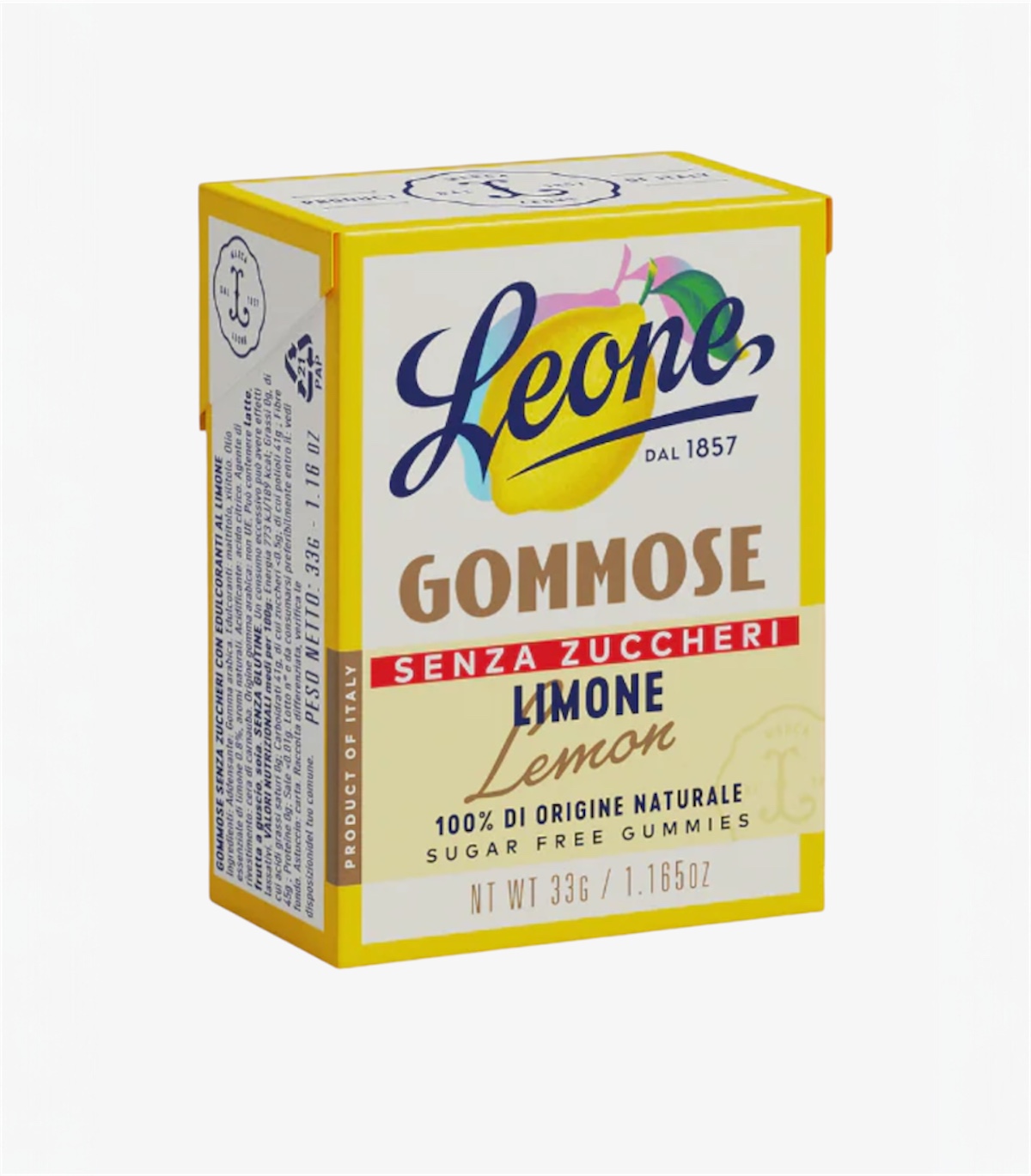 Le Caramelle Gommose Leone Limone Sugar Free sono deliziose caramelle realizzate senza zucchero e con aromi naturali di limone di Sicilia e che racchiudono tutta la freschezza e l’autenticità degli agrumi italiani.