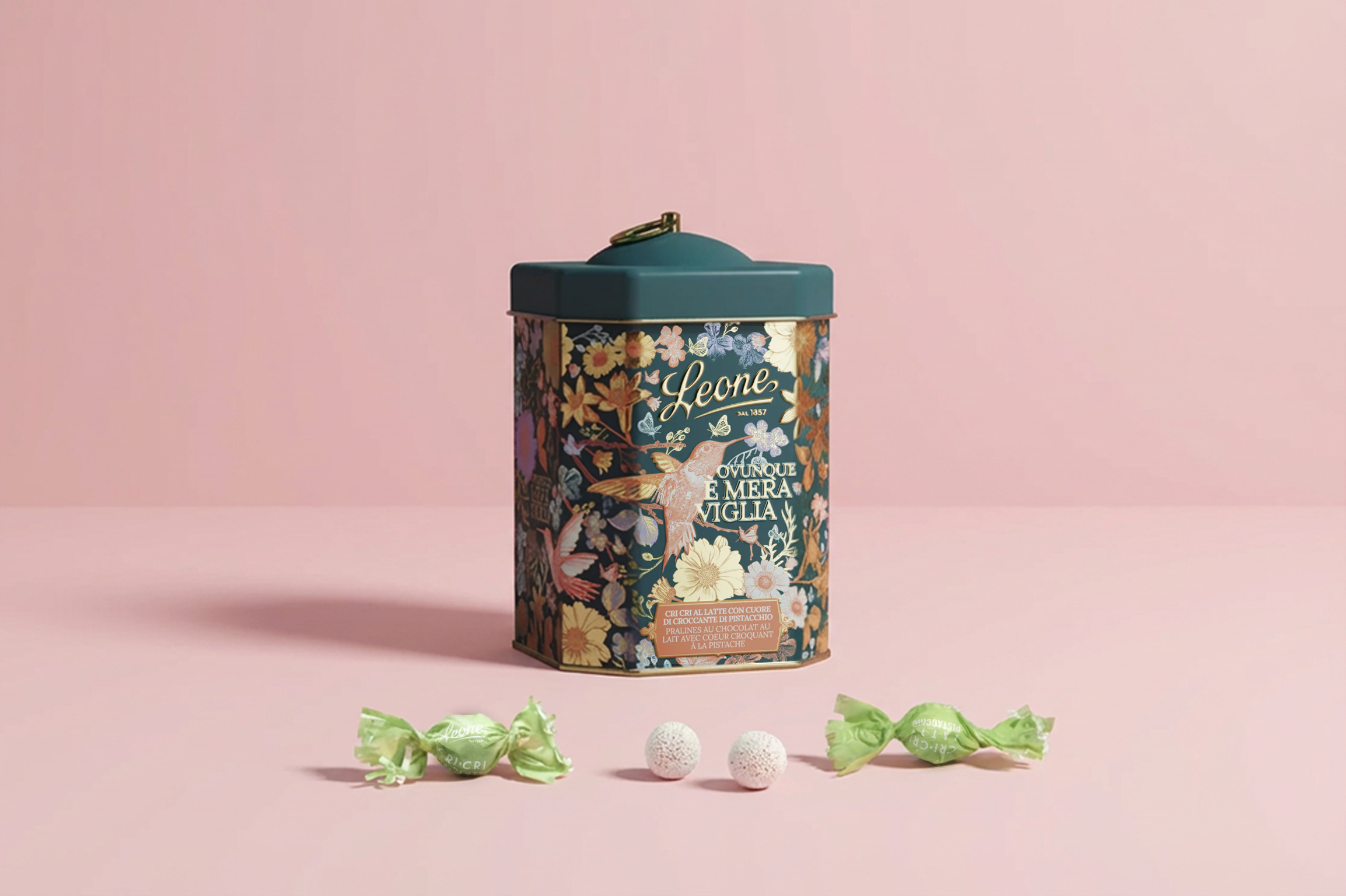 La latta Leone Cri Cri al Pistacchio è ideale come idea regalo elegante, perfetta per occasioni speciali o come pensiero ricercato per gli amanti del cioccolato. Una volta terminati i cioccolatini, la confezione diventa un oggetto da collezione, perfetto da riutilizzare.